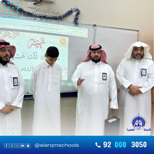 تعرف على تفاصيل اللقاء المفتوح بين مدير قسم المتوسط بنين والطلاب في مدارس الأرقم بالرياض، حيث تم شرح لائحة التقويم المدرسي والاختبارات المركزية واختبار نافس