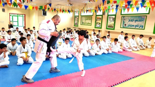 شاهد تفاصيل حفل تسليم الحزام الأصفر لفنون الدفاع عن النفس في مدارس الأرقم بالرياض بحضور المشرف العام ومديري الأقسام وعروض الطلاب المتميزة